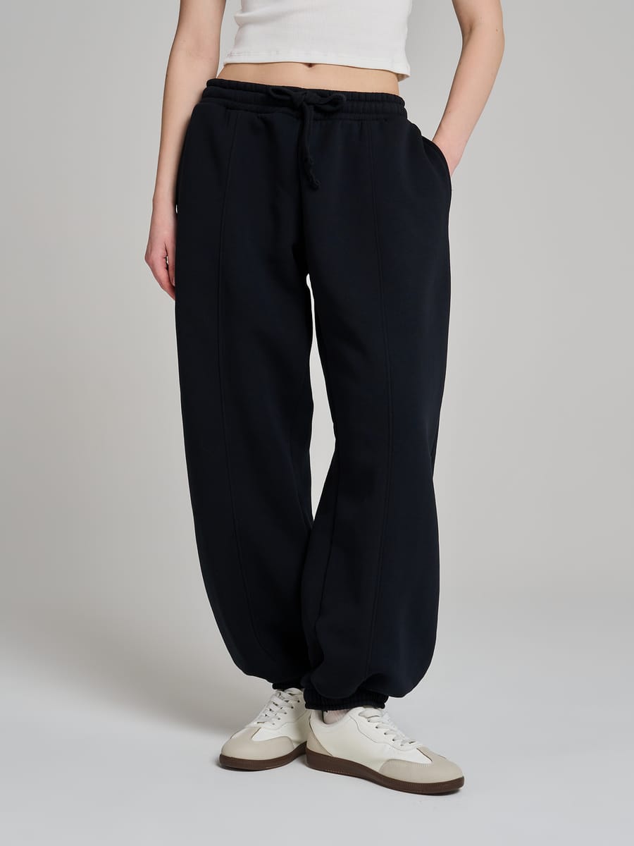 Базовые брюки джоггеры с начесом и резинкой снизу