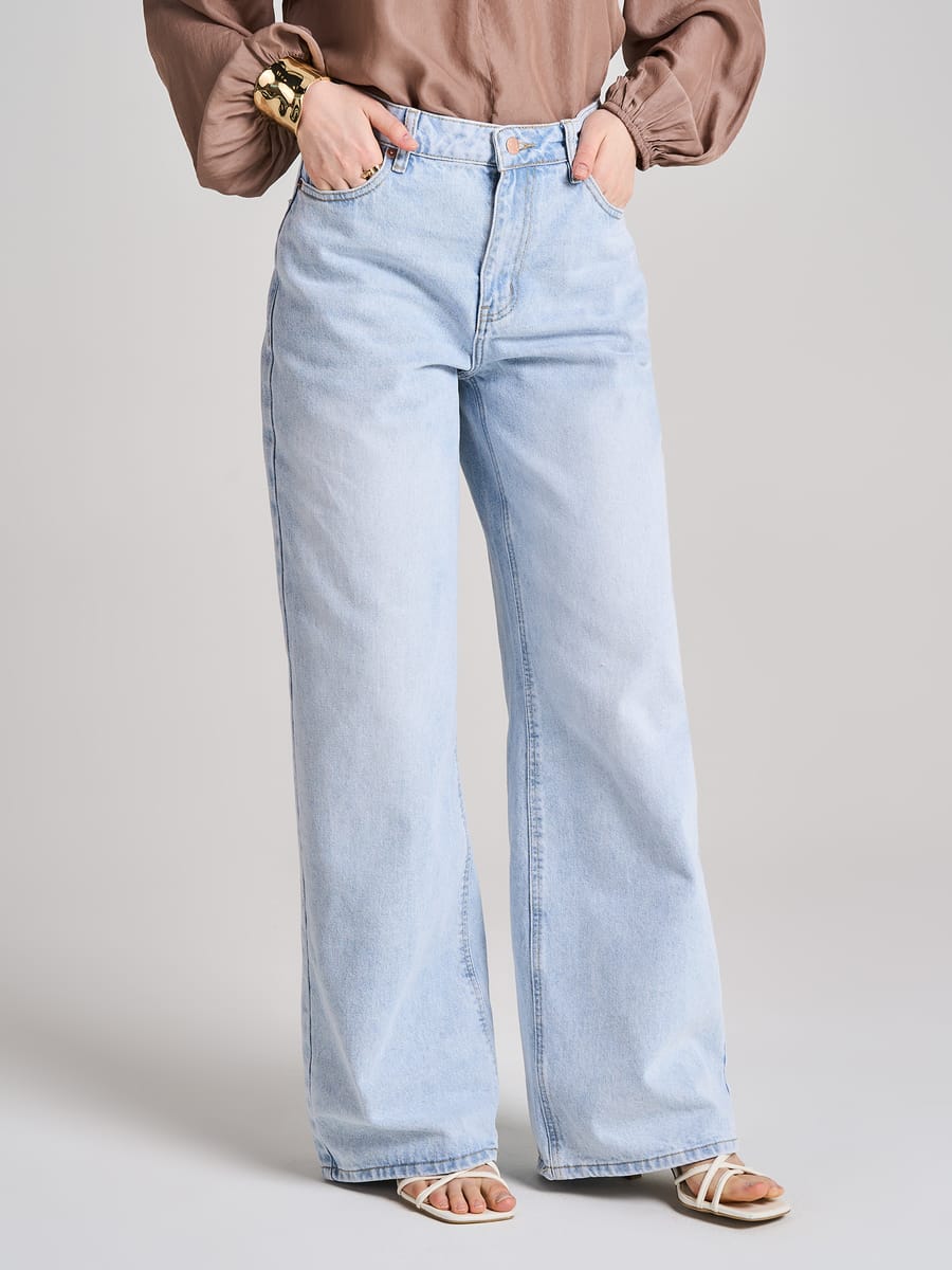 Джинсы широкие с завышенной талией
