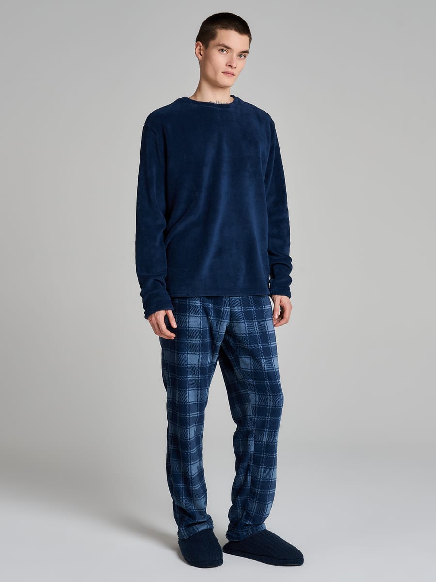 Пижама плюшевая с лонгсливом и брюками в клетку