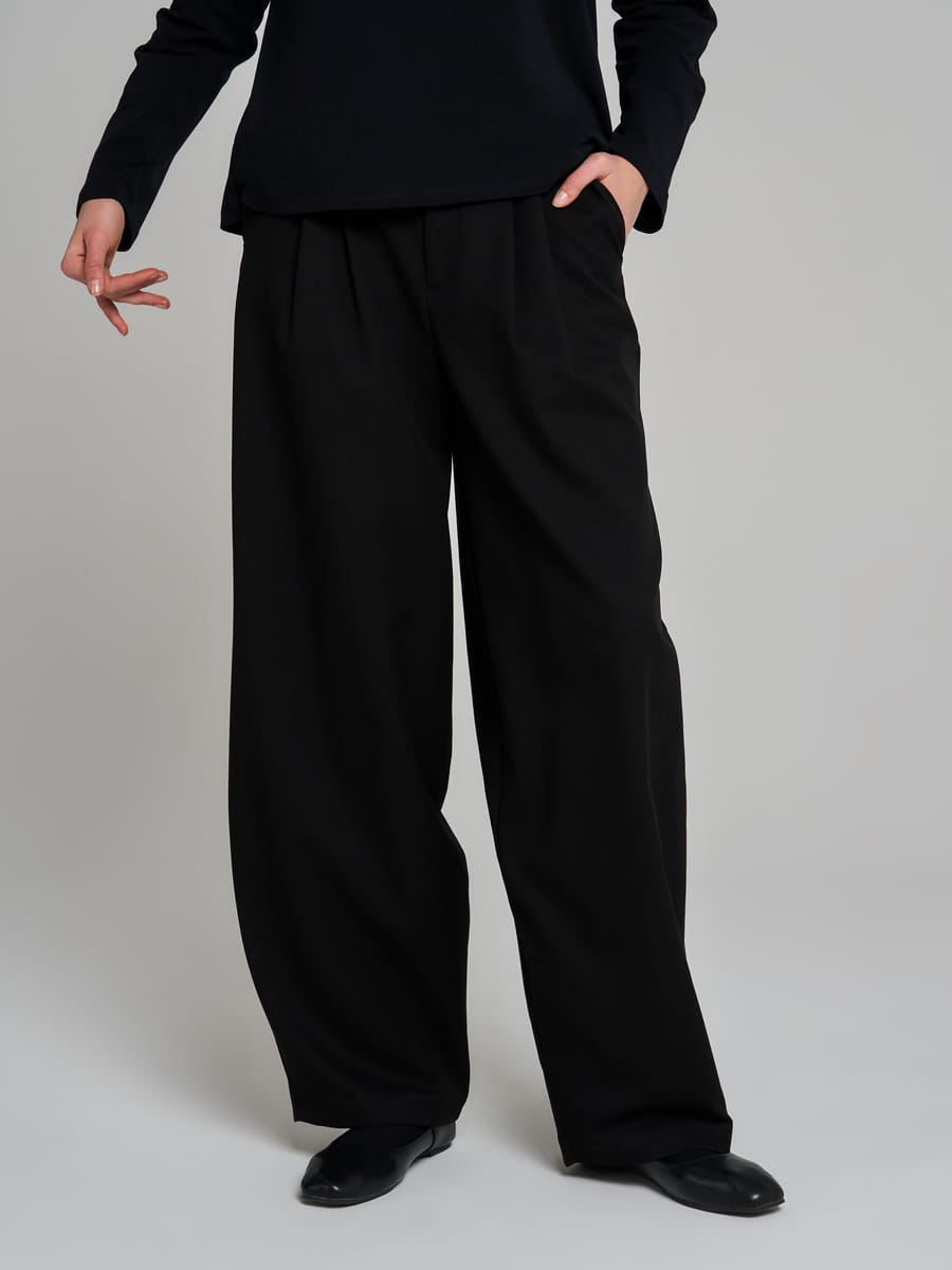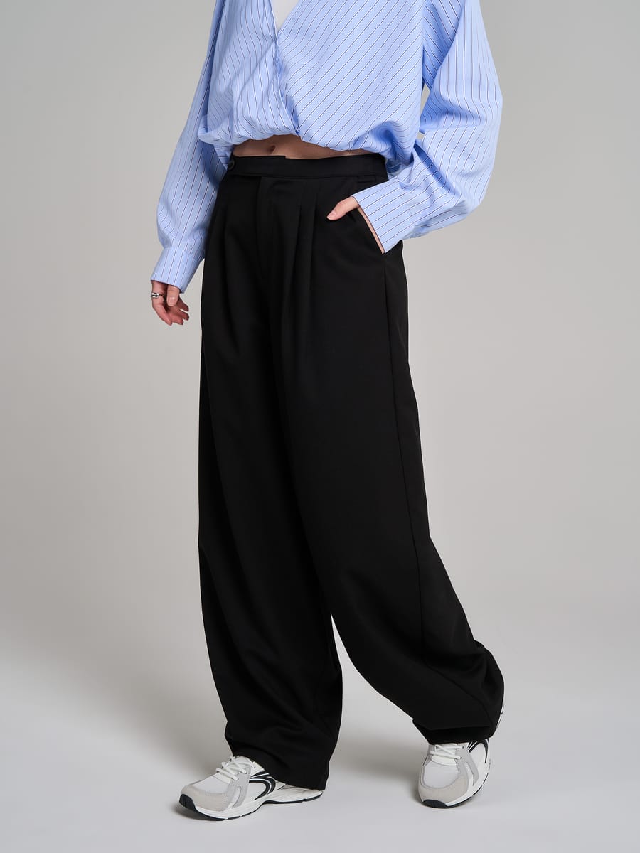 Женские брюки от бренда ТВОЕ — это гармоничное сочетание классики и современных трендов 2025 года. Модель в стиле «бананы» демонстрирует продуманный крой: широкие в области бёдер и аккуратно зауженные книзу, они создают изящный силуэт, подчёркивая достоинства фигуры. Глубокий чёрный цвет делает эти штаны универсальным базовым элементом гардероба, легко сочетающимся с самыми разными верхами.