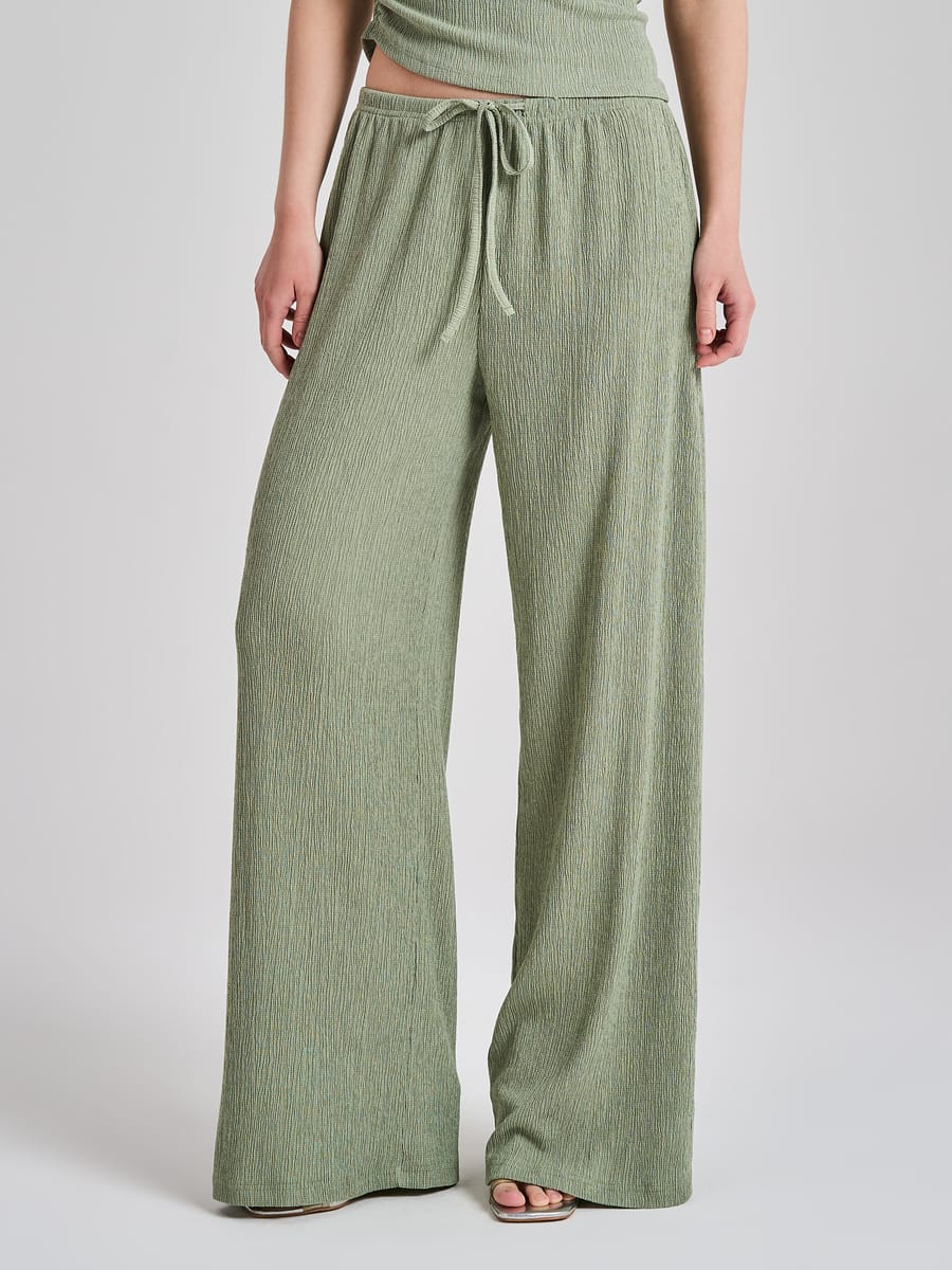 Женские прямые брюки от ТВОЕ 2026 года — стильный и удобный выбор для весны и лета. Модель из жатой ткани с резинкой и кулиской на талии отличается свободным кроем и средней посадкой. Без карманов, лёгкие и непринуждённые, они идеально подходят для прогулок, пляжного отдыха и повседневных образов в стиле кэжуал. Добавьте их в свой гардероб — и наслаждайтесь комфортом в жаркие дни!