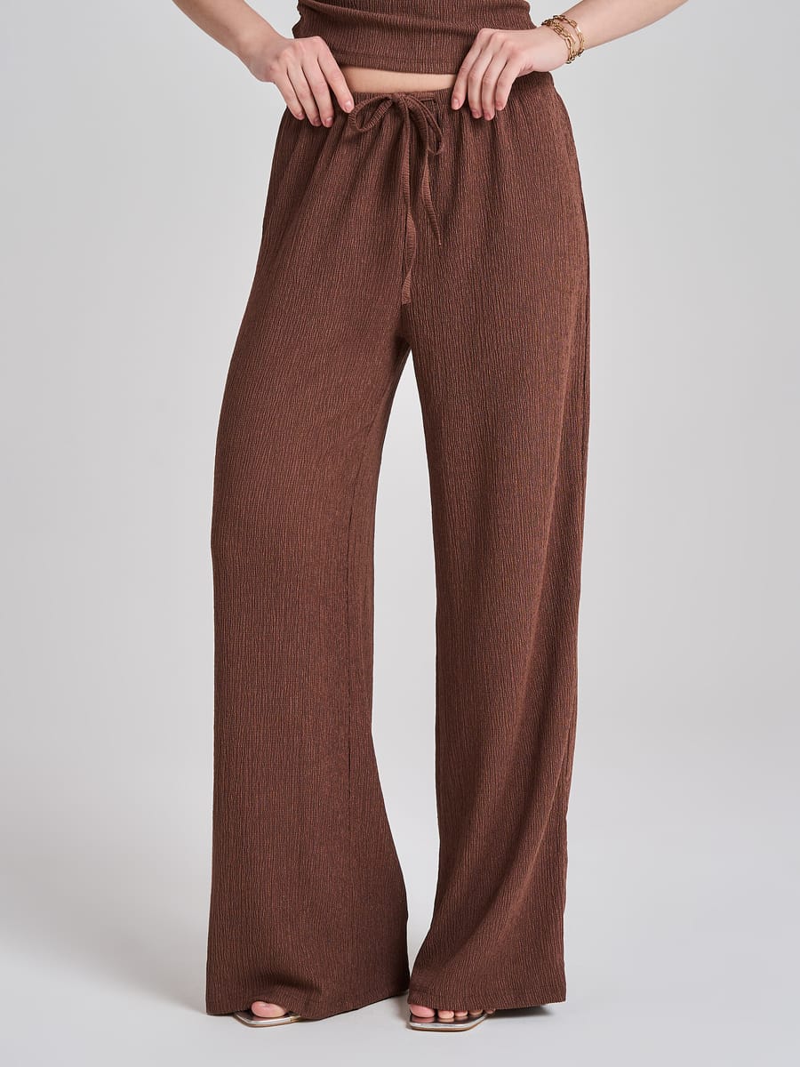 Женские прямые брюки от ТВОЕ 2026 года — стильный и удобный выбор для весны и лета. Модель из жатой ткани с резинкой и кулиской на талии отличается свободным кроем и средней посадкой. Без карманов, лёгкие и непринуждённые, они идеально подходят для прогулок, пляжного отдыха и повседневных образов в стиле кэжуал. Добавьте их в свой гардероб — и наслаждайтесь комфортом в жаркие дни!