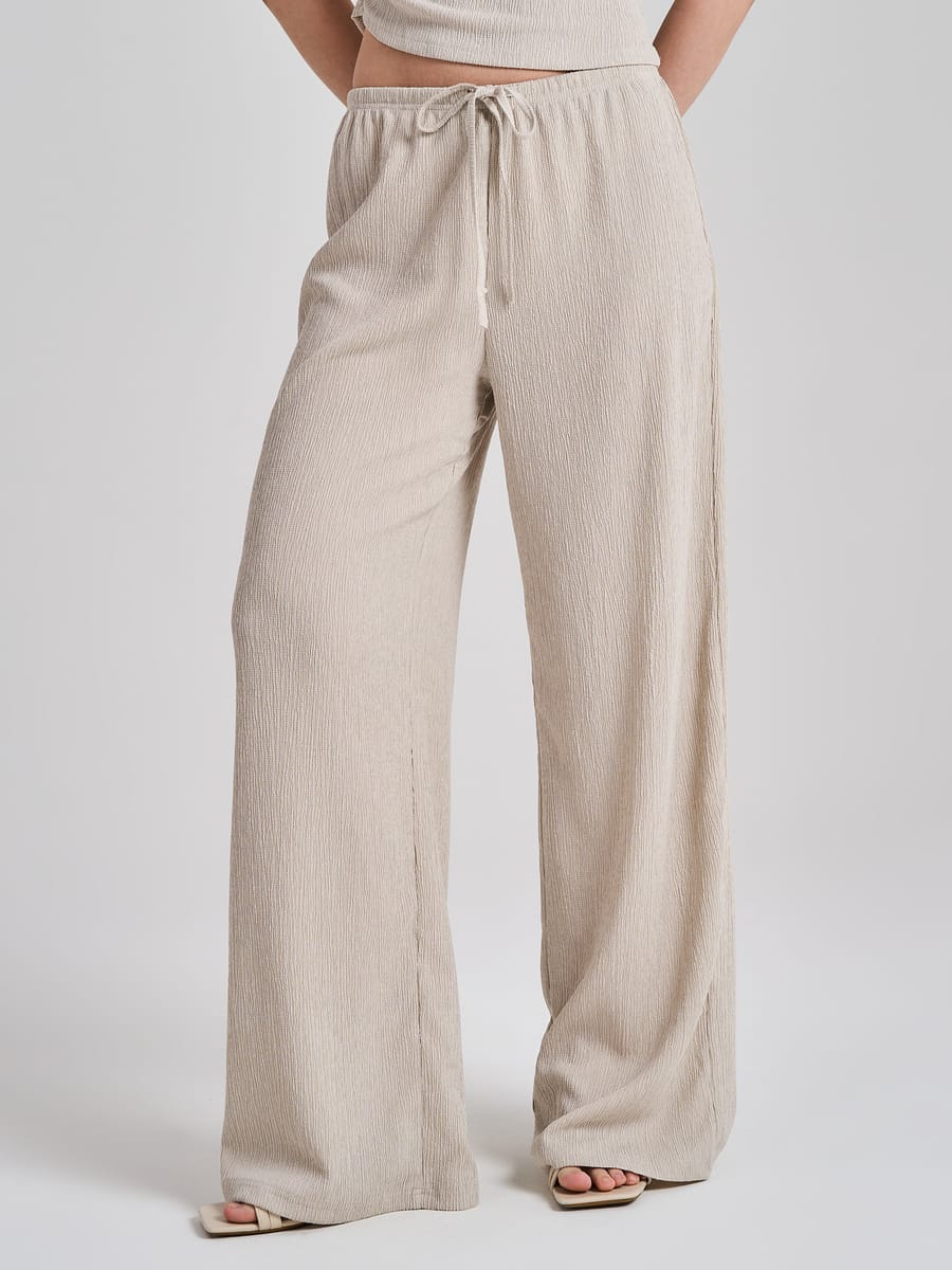 Женские прямые брюки от ТВОЕ 2026 года — стильный и удобный выбор для весны и лета. Модель из жатой ткани с резинкой и кулиской на талии отличается свободным кроем и средней посадкой. Без карманов, лёгкие и непринуждённые, они идеально подходят для прогулок, пляжного отдыха и повседневных образов в стиле кэжуал. Добавьте их в свой гардероб — и наслаждайтесь комфортом в жаркие дни!