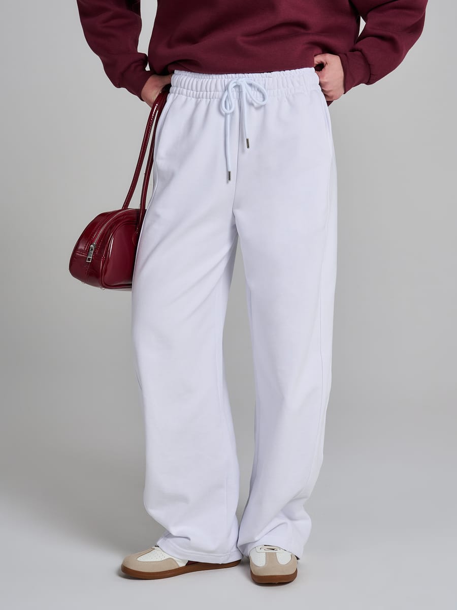 Женские брюки от бренда ТВОЕ 2026 года — это воплощение современного спортивного стиля с акцентом на комфорт и свободу движений. Модель идеально впишется в активный образ жизни и станет надёжной основой повседневного гардероба: она уместна и на тренировке в зале, и на пробежке, и в школьные будни, и во время неспешных прогулок по городу. Завышенная талия с широкой резинкой и завязками подчёркивает силуэт, деликатно корректируя его, и при этом не сдавливает — ощущение комфорта сохраняется в любой ситуации. Особый шарм модели придают смещённые боковые швы — эта дизайнерская деталь создаёт оригинальный визуальный эффект и выделяет брюки из ряда стандартных спортивных вариантов.