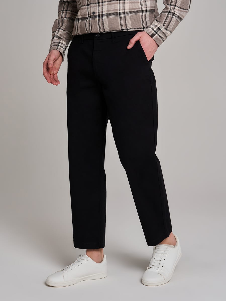Мужские брюки от бренда ТВОЕ — универсальная модель, которая гармонично сочетает классические черты с современными тенденциями 2026 года. Черный однотонный оттенок выглядит сдержанно и солидно, позволяя легко вписать эту вещь как в деловой гардероб, так и в повседневные образы. Зауженный крой создаёт аккуратный силуэт, подчёркивая стиль без ущерба комфорту: брюки выглядят модно и при этом не сковывают движений. Благодаря составу ткани (98% хлопка и 2% эластана) модель отлично держит форму, слегка тянется в нужных местах и остаётся удобной в течение всего дня — будь то насыщенный рабочий график в офисе или неспешная прогулка.