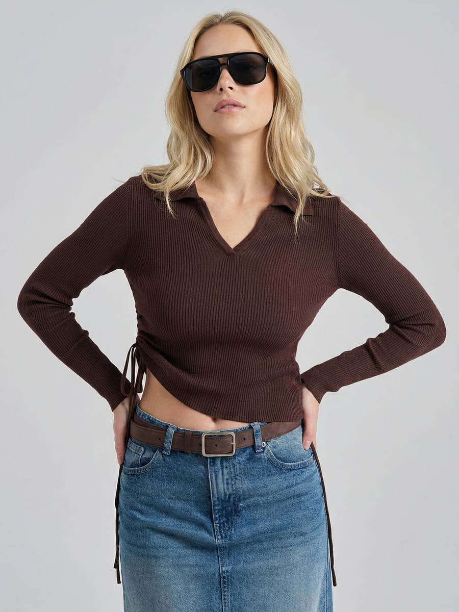 Женский джемпер от бренда ТВОЕ — это изящная трикотажная модель, в которой гармонично сочетаются деловая сдержанность и молодёжная игривость. Приталенный крой деликатно подчёркивает силуэт, создавая элегантный и в то же время непринуждённый образ. Особую изюминку дизайну придаёт комбинация V‑образного выреза с отложным воротником в стиле поло — такой приём добавляет изделию ноту утончённой классики. Уникальная деталь модели — завязки, позволяющие создавать асимметричную драпировку.