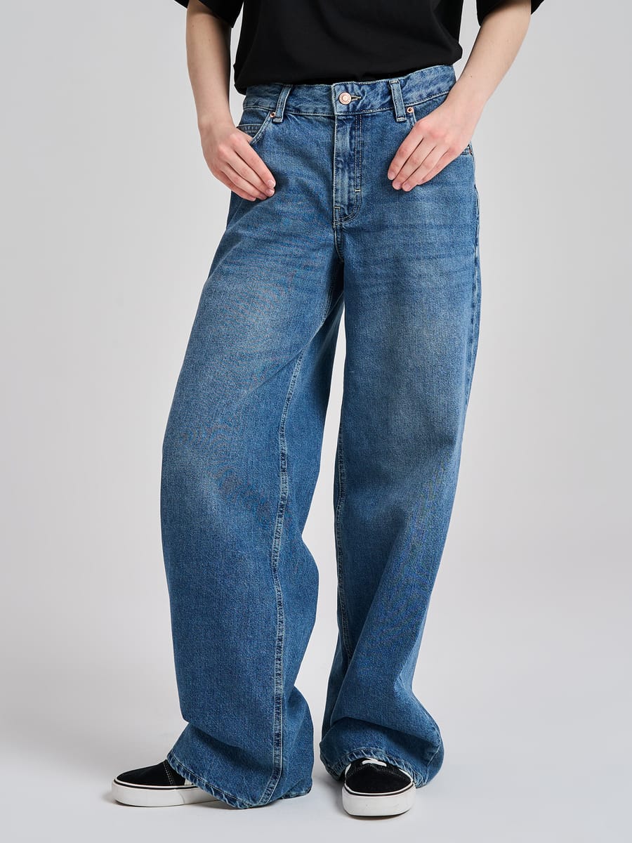 Трендовые джинсы багги от бренда ТВОЕ — воплощение современного стиля и комфорта. Модель представлена в актуальном синем цвете с эффектным вареным декором, что делает её настоящим хитом сезона 2026 в стиле Y2K. Уникальный силуэт багги характеризуется широкими штанинами с легким заужением книзу, создавая модный и расслабленный образ. Стандартная посадка и средняя талия обеспечивают комфортную посадку по фигуре, не стесняя движений.