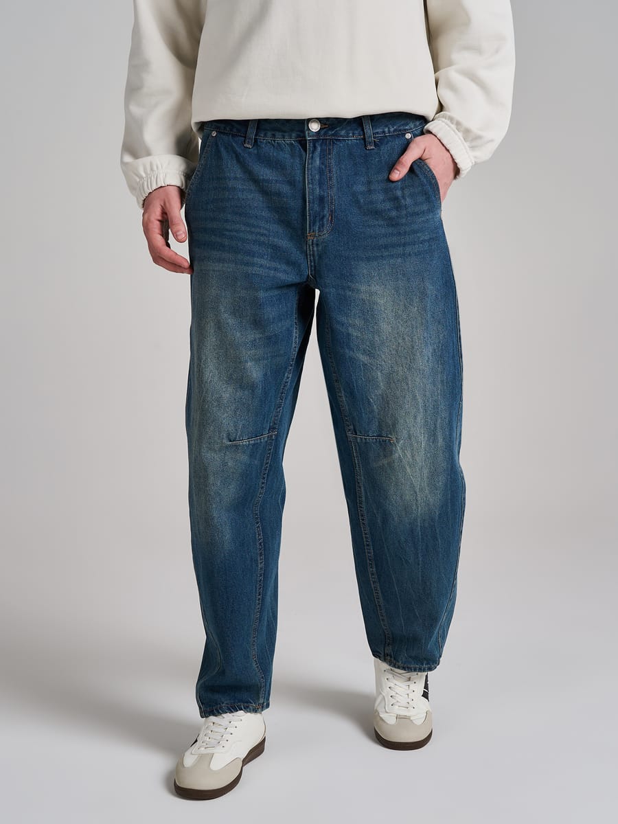 Мужские джинсы от бренда ТВОЕ — смелый взгляд на классику в сезоне 2026 года, который оценят и подростки, и взрослые мужчины. Модель в стиле balloon привлекает внимание продуманным силуэтом: широкие в области бёдер, джинсы плавно заужаются к низу, создавая выразительный и современный контур. Варёный эффект придаёт изделию особый шарм — лёгкая винтажная эстетика делает джинсы по‑настоящему трендовыми, но при этом не выходит за рамки универсальности. Оригинальный крой подчёркивают смещённые к центру боковые швы — эта деталь добавляет дизайну индивидуальности и выделяет брюки на фоне стандартных моделей. Практичность гармонично сочетается с эстетикой: прорезные карманы спереди и накладные карманы сзади продуманы до мелочей — они вместительны и при этом не нарушают общий силуэт изделия.