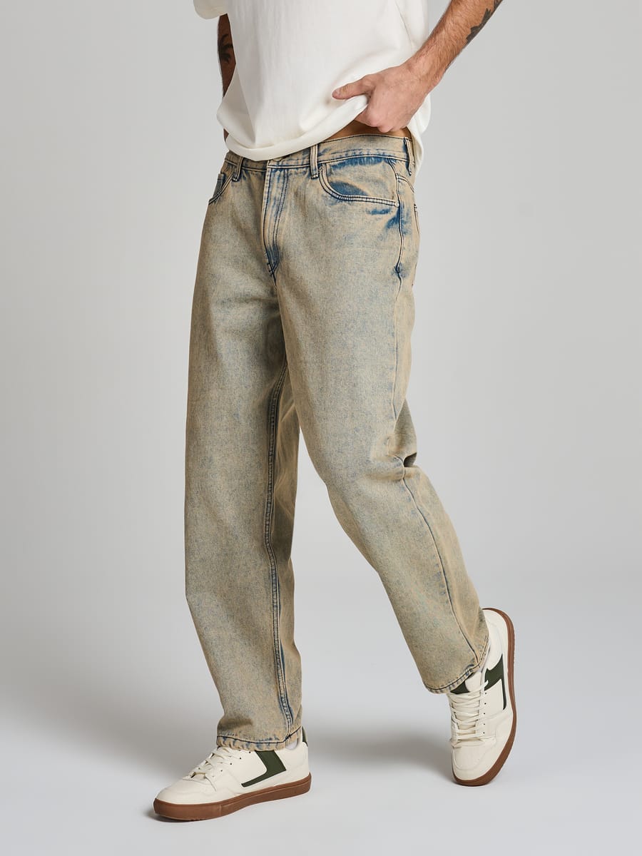 Прямые джинсы с варенным эффектом