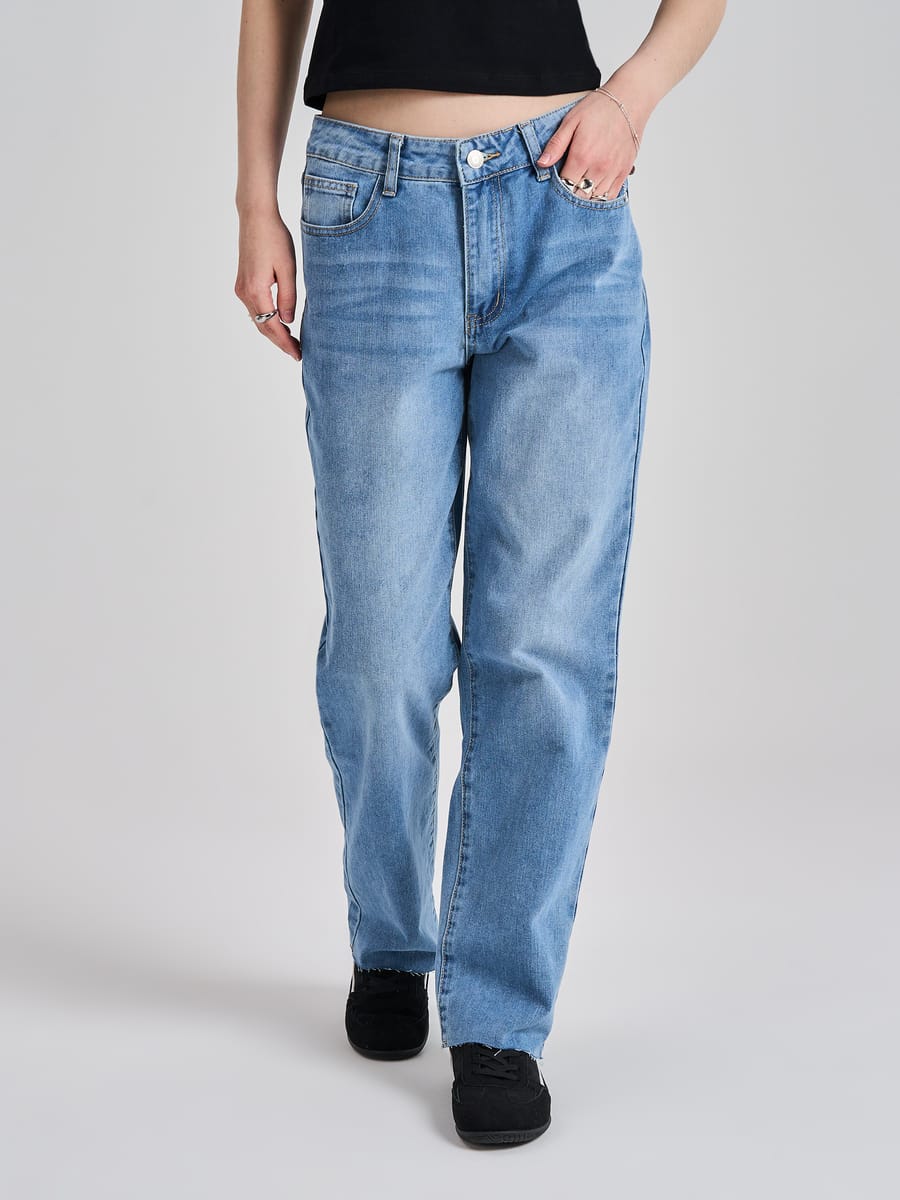 Джинсы прямые с необработанными краями