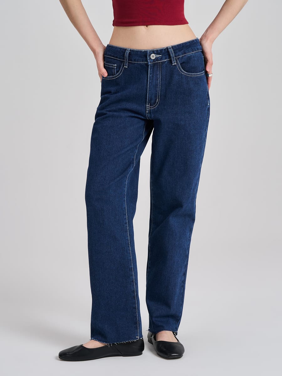 Джинсы прямые с необработанными краями
