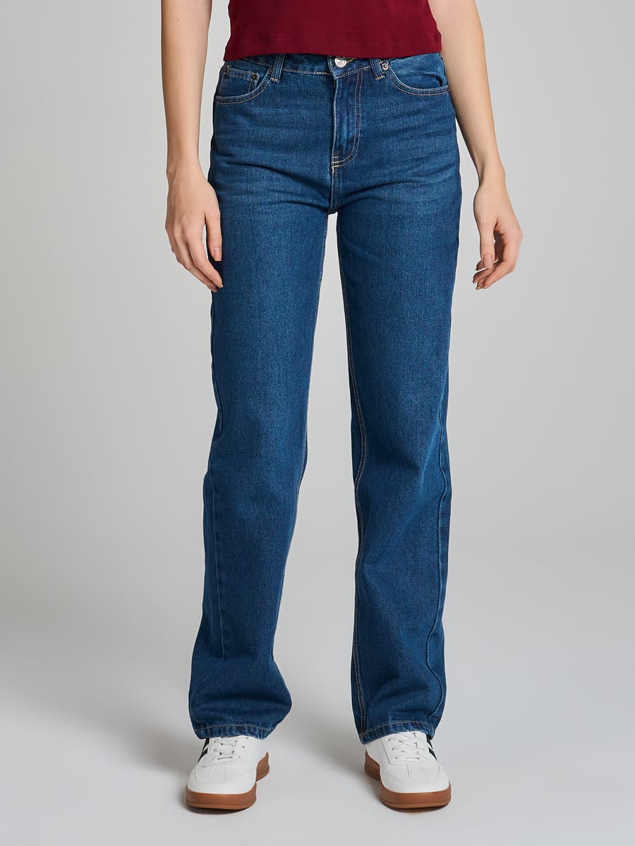 Безупречный комфорт и актуальный дизайн воплотились в этих универсальных джинсах, которые станут незаменимой частью гардероба каждой девушки. Модель выполнена в трендовом синем цвете с эффектным вареным оттенком, что придает ей особый винтажный шарм в стиле Y2K.
