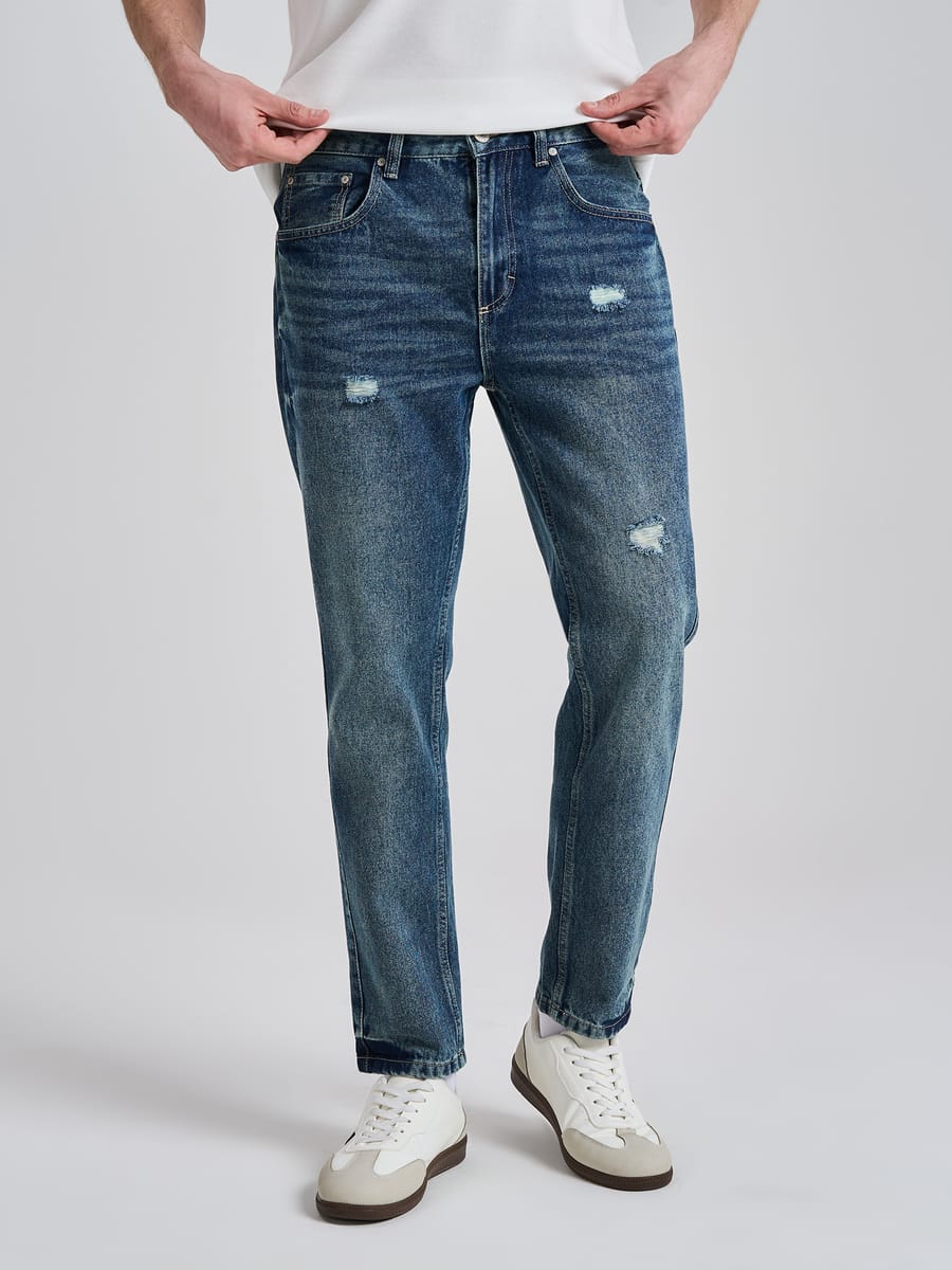 Мужские джинсы от ТВОЕ 2026 — стильные прямые укороченные модели с разрезами, декоративными потёртостями и варёным эффектом. Средней посадки, застёгиваются на молнию и пуговицы, выполнены из 100 % хлопка. Плотные и удобные — идеальны для прогулок, свиданий, офиса и повседневного ношения. Модный выбор для мужчин и подростков!