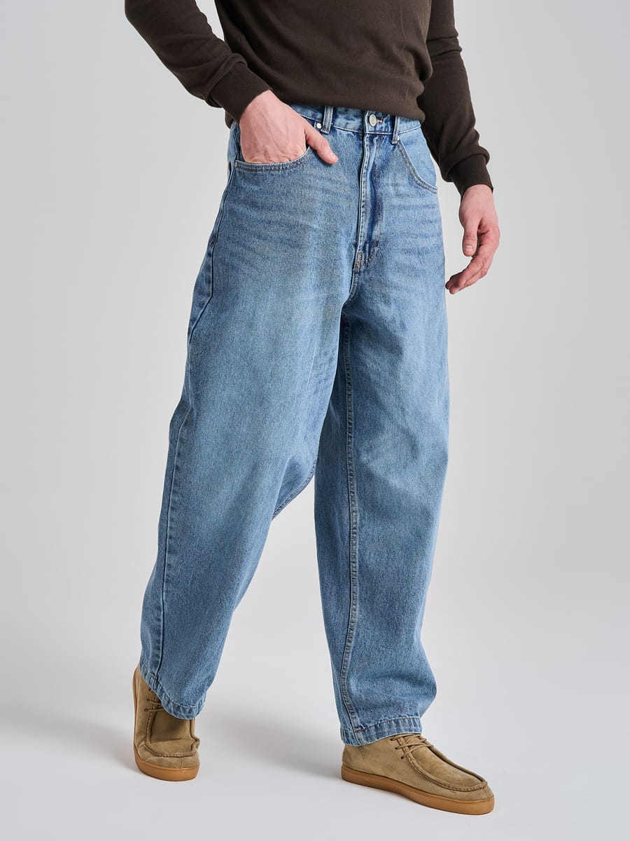 Мужские джинсы от бренда ТВОЕ — модель 2026 года, которая воплощает современный взгляд на джинсовую классику. Фасон baggy с широкими штанинами создаёт расслабленный, но продуманный силуэт: он подчёркивает молодёжный стиль, не жертвуя комфортом. Средняя посадка обеспечивает удобную посадку, а плотная хлопковая ткань (100% хлопок) гарантирует долговечность и приятные ощущения при носке. Особый шарм модели придаёт эффект «варёнки»: слегка выцветшие участки и мягкие переходы оттенков добавляют изделию винтажный акцент и делают его по‑настоящему трендовым. Этот визуальный эффект помогает джинсам выглядеть не просто как базовая вещь, а как осознанный модный выбор — они сразу привлекают внимание, но при этом остаются универсальными.