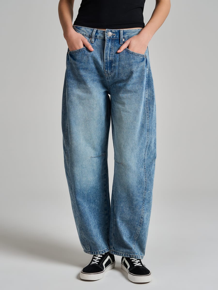 Женские джинсы Ballon от бренда ТВОЕ — это смелый взгляд на современную моду, где игривая объёмность гармонично сочетается с лаконичностью линий. Модель притягивает внимание оригинальным силуэтом: широкие бёдра плавно сужаются к низу, создавая эффектный контраст, а стильные вставки по бокам добавляют дизайну выразительности и подчёркивают авторский почерк бренда. Средняя линия талии обеспечивает комфортную посадку, деликатно акцентируя естественные пропорции фигуры. Прорезные и накладные задние карманы не просто выполняют утилитарную функцию — они вносят в образ ритмичный акцент, придавая силуэту завершённость и характер.