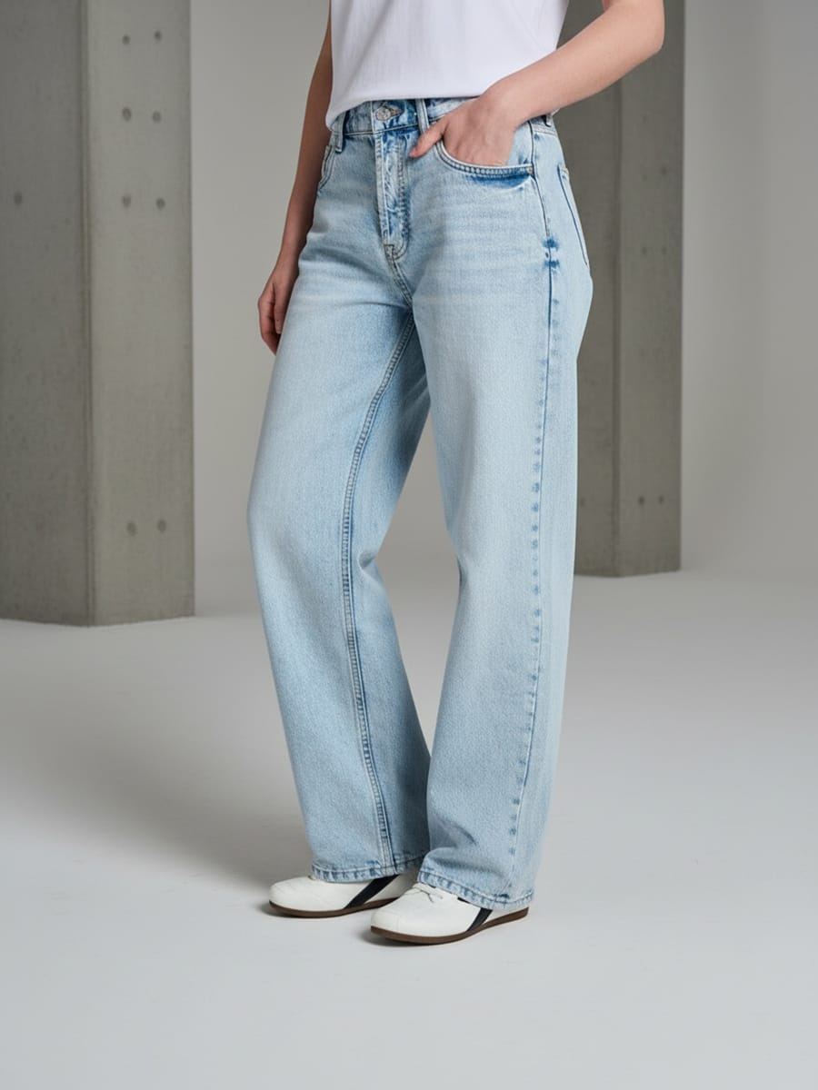 Женские джинсы от бренда ТВОЕ - это идеальное сочетание моды и комфорта для стильных женщин и подростков. Они отличаются светло-голубым цветом и выполнены из 100% хлопка, что делает их плотными и приятными на ощупь.