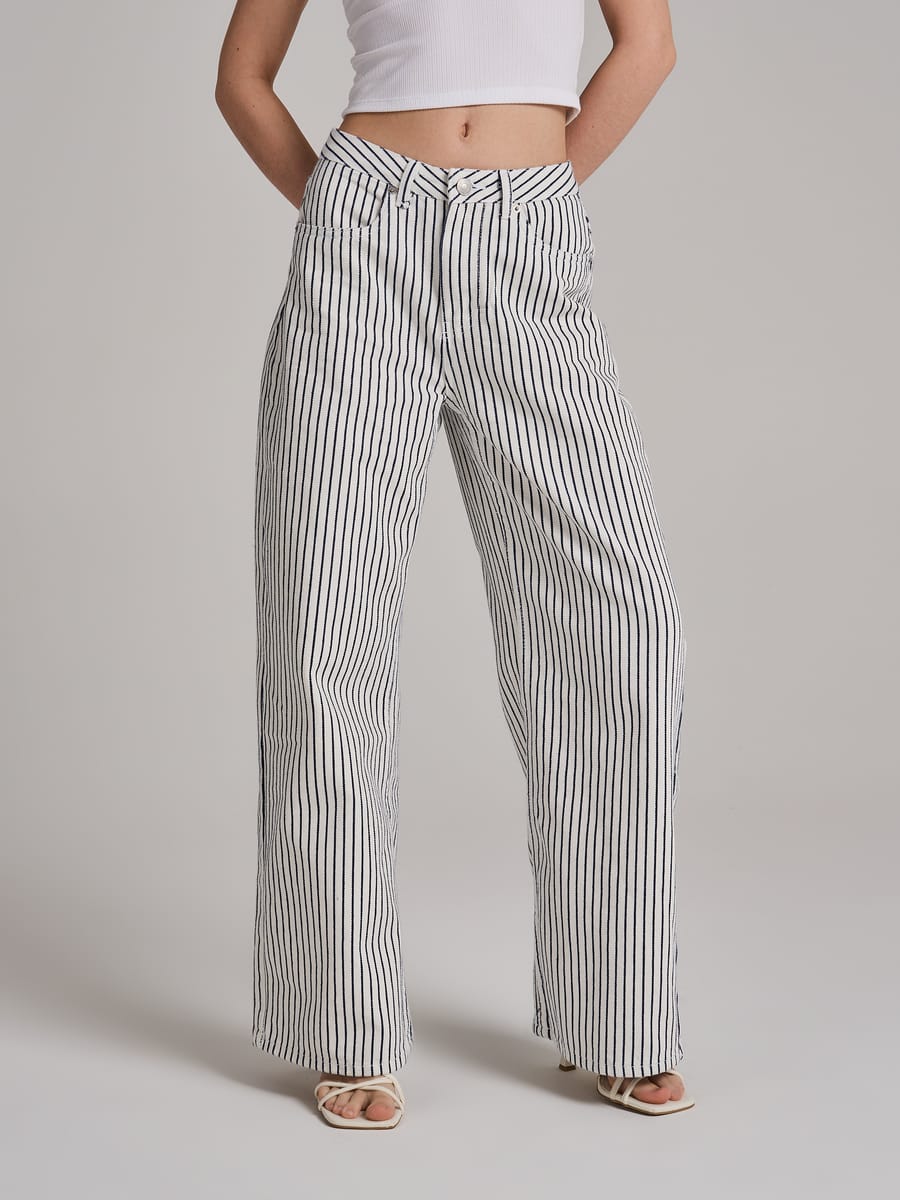 Женские джинсы от бренда ТВОЕ в белом цвете с тонкой полоской — смелое и стильное решение для тех, кто любит выделяться и при этом оставаться в тренде. Необычный принт придаёт модели особый шарм: полоска деликатно подчёркивает силуэт, а белый оттенок освежает образ, делая его лёгким и летним, но при этом достаточно универсальным для разных сезонов. Широкий крой создаёт расслабленный, но выразительный силуэт — он мягко драпируется по фигуре, не сковывая движений и добавляя образу непринуждённой элегантности. Средняя посадка обеспечивает удобную посадку на талии, подчёркивая пропорции без излишнего акцента. Такая модель подойдёт и подросткам, и взрослым женщинам, которые ценят сочетание моды и комфорта.