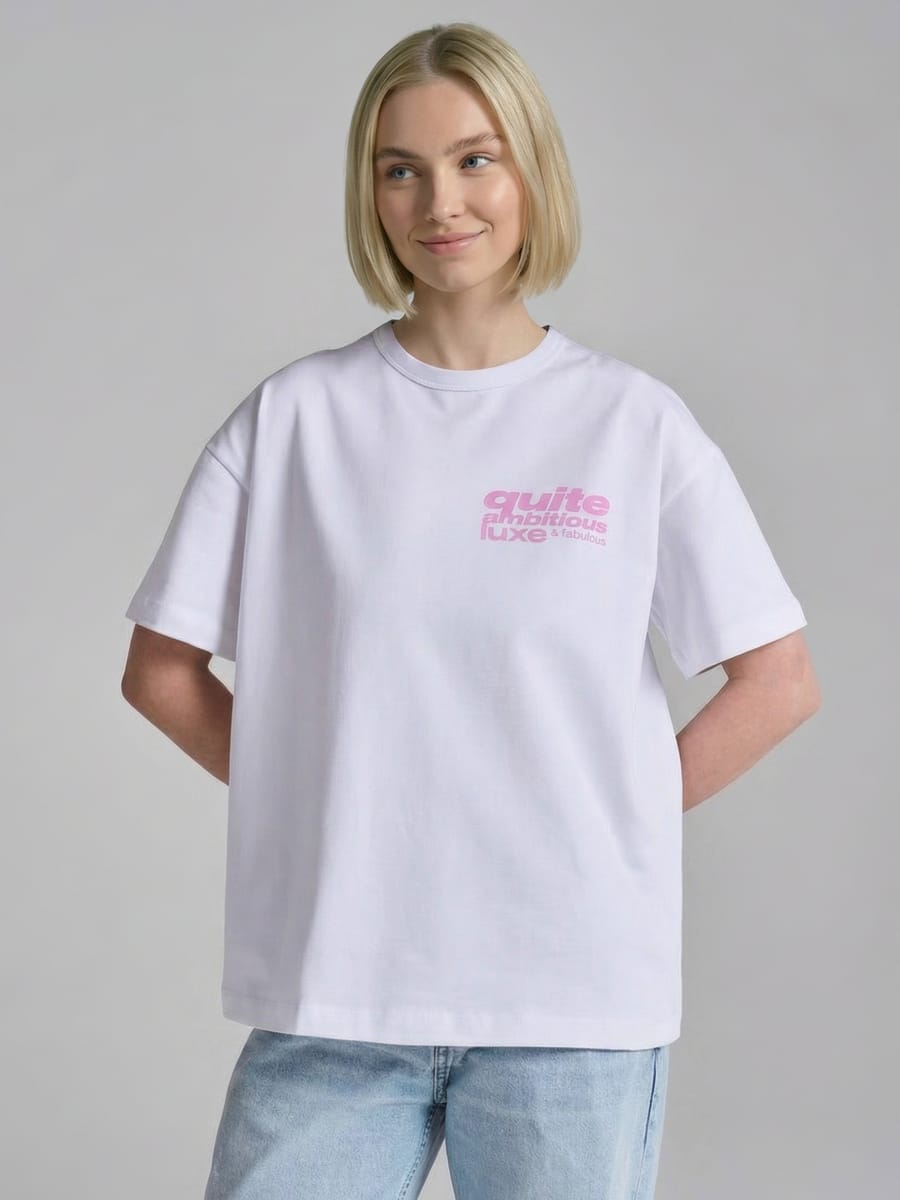 Женская футболка от бренда ТВОЕ — это воплощение современного молодёжного стиля, где практичность органично сочетается с выразительным дизайном. Модель выполнена из натурального хлопка (100%), что гарантирует исключительный комфорт: ткань дышит, мягко прилегает к телу и не вызывает раздражения даже при интенсивных нагрузках. Белый цвет служит безупречным фоном для эффектного принта — изображения пачки денег вместе с надписью «quite ambitious luxe». Этот графический акцент придаёт вещи характер, превращая её в своеобразный манифест амбиций и самоиронии. Надпись и рисунок выполнены так, что привлекают внимание, но не перегружают образ, оставляя пространство для индивидуального стиля.