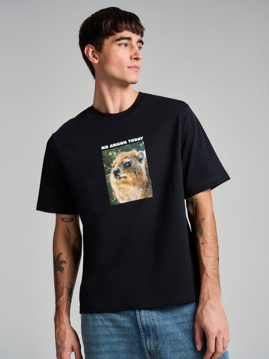 Оригинальная футболка от бренда ТВОЕ — идеальное сочетание комфорта и необычного дизайна. Модель выполнена из премиального 100% хлопка, обеспечивающего максимальный комфорт при любых активностях. Уникальный дизайн привлекает внимание смешным принтом с изображением животного даман и забавной надписью «no awawa today», что делает футболку по-настоящему запоминающейся.