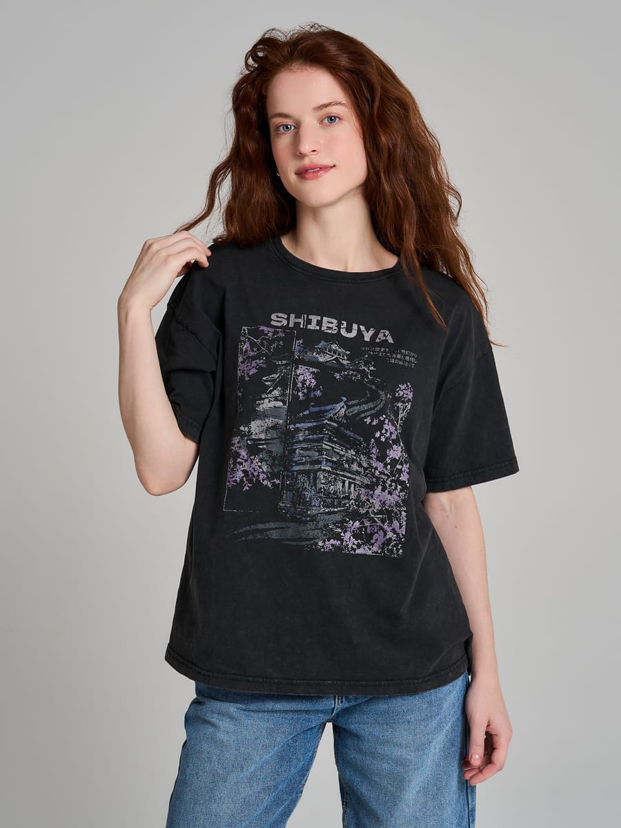 Женская футболка от бренда ТВОЕ — это стильный мост между восточной эстетикой и современным городским стилем. Выполненная из премиального хлопка плотностью 200 г/м², она сочетает в себе безупречное качество материала и продуманный дизайн, который остаётся комфортным в любой ситуации. Глубокий чёрный цвет создаёт благородный фон для изысканного принта: изображение японского дома в сочетании с надписью Shibuya придаёт модели особый шарм. Этот графический акцент не просто украшает модель — он рассказывает маленькую историю о пересечении культур, добавляя образу интеллектуальной утончённости. Принт выполнен с вниманием к деталям, что делает вещь не просто одеждой, а своеобразным художественным высказыванием.