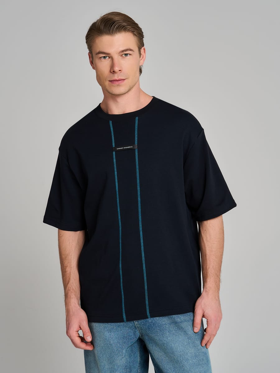 Мужская футболка от бренда ТВОЕ — это воплощение лаконичной классики с современной изюминкой. Выполненная из 100 % хлопка, она обеспечивает комфорт в носке и отличную воздухопроницаемость, позволяя коже дышать в любой ситуации. Глубокий чёрный цвет служит безупречной основой, которую деликатно оживляют две тонкие синие вертикальные полоски, придающие модели стильный и ненавязчивый акцент.