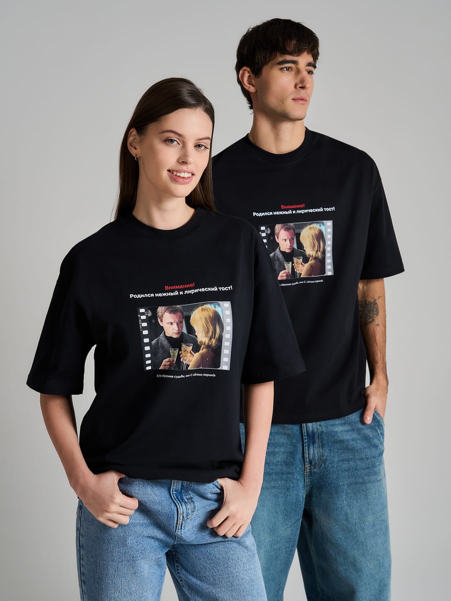 Футболка от бренда ТВОЕ — это уникальная коллаборация с Мосфильмом, посвященная Новому году. Она украшена принтом из кинофильма Ирония судьбы, или С лёгким паром!, что делает ее отличным подарком для поклонников кино и стиля. Кофта выполнена в свободном крое, что обеспечивает комфорт и свободу движений. Она черного цвета, что делает ее универсальной и легко сочетаемой с различными элементами гардероба. Классический крой и 100% хлопок гарантируют высокое качество и долговечность. Футболка подходит как для мужчин, так и для женщин (унисекс), что делает ее идеальным выбором для парных образов.