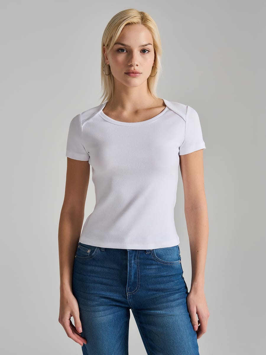 Женская футболка от бренда ТВОЕ — это воплощение гармоничного баланса между элегантной женственностью и спортивной практичностью. Сочетание 92 % хлопка и 8 % эластана придаёт изделию особую ценность: натуральный материал обеспечивает комфорт и воздухопроницаемость, а эластичные волокна — идеальную посадку по фигуре и долговечность формы. Модель выполнена в однотонной гамме, что делает её универсальной базой для самых разных образов. Приталенный крой и облегающий силуэт деликатно подчёркивают линии тела, создавая изящный и женственный силуэт без ущерба для свободы движений. Особого внимания заслуживают декоративные элементы на вырезе — они не только украшают изделие, но и выполняют практическую функцию, облегчая процесс надевания.