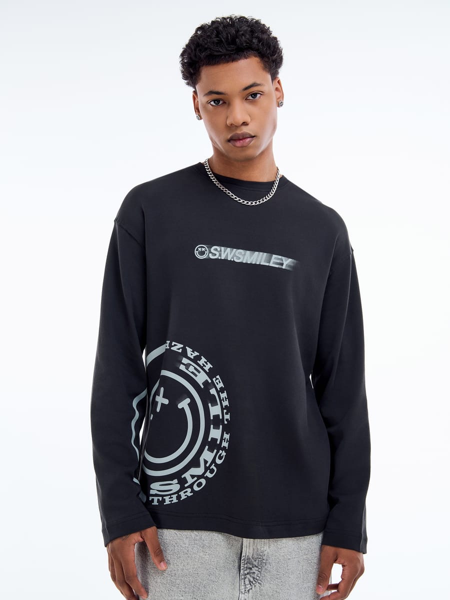 Плотный лонгслив оверсайз с принтом Smiley