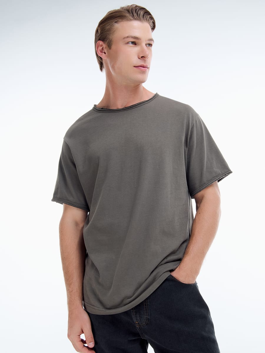 Комфортная и стильная футболка цвета хаки — отличный выбор для тех, кто ценит удобство и модный образ. Модель выполнена из 100% хлопка, что обеспечивает приятные ощущения при носке и хорошую воздухопроницаемость. Необработанные края: придают футболке уникальный и небрежный вид, подчёркивая стиль.