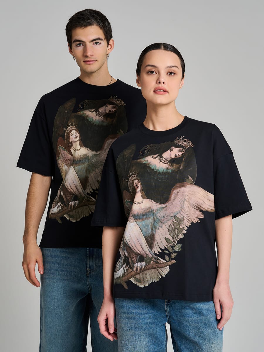 Погрузитесь в мир русского искусства с уникальной футболкой из совместной коллекции бренда ТВОЕ и Третьяковской галереи! Модель вдохновлена шедевром Виктора Васнецова «Сирин и Алконост» — легендарным полотном, которое оживает на вашей одежде в виде яркого, детализированного принта.