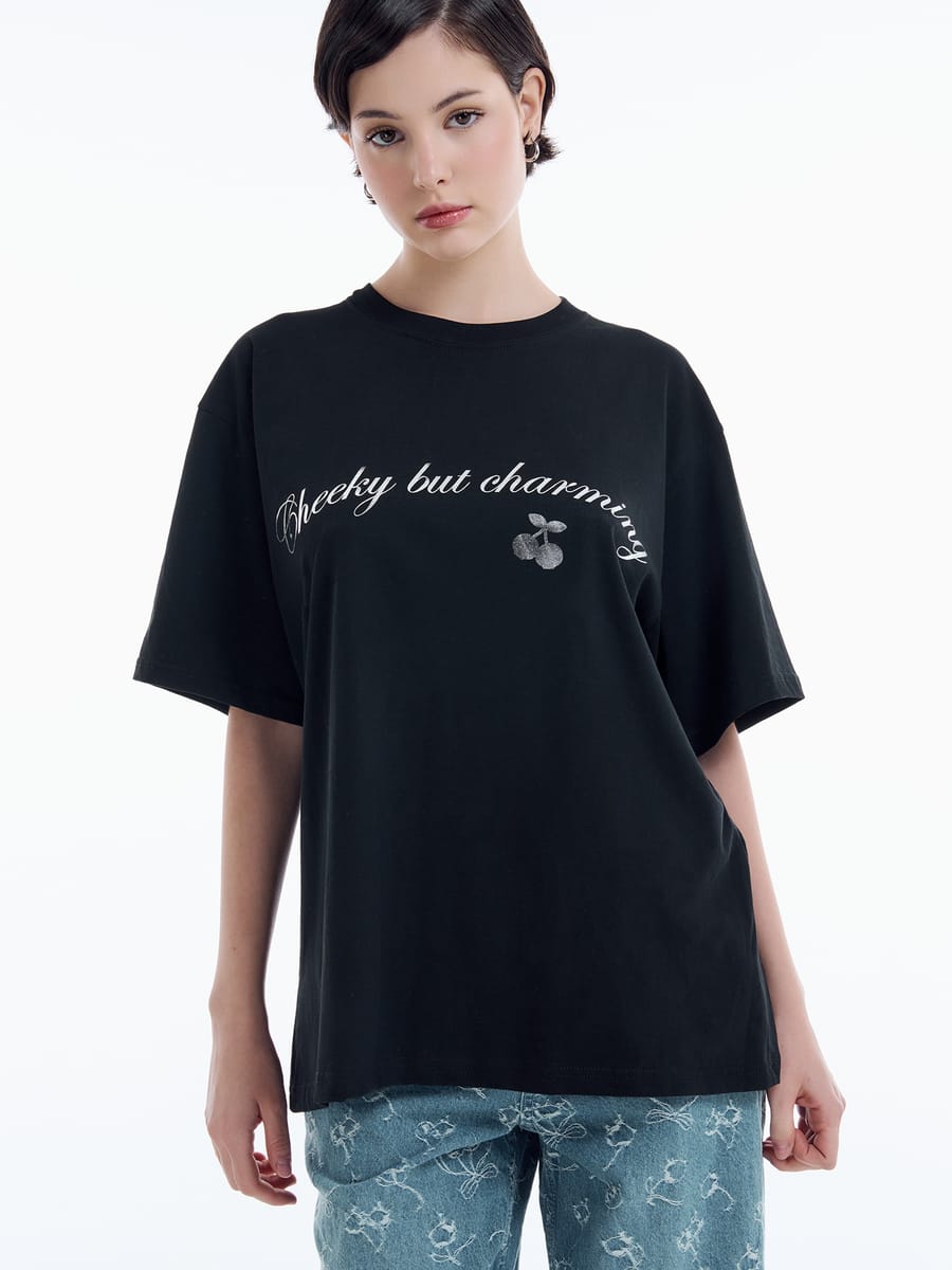 Роскошное воплощение стиля y2k в современной интерпретации 2025 года! Эта уникальная футболка с персонажем Kuromi на спине и стильной надписью Cheeky but charming спереди, становясь настоящим украшением гардероба. Натуральные материалы обеспечивают непревзойденный комфорт: выполнена из 100% хлопка, который дарит коже возможность дышать и сохраняет форму после множества стирок.