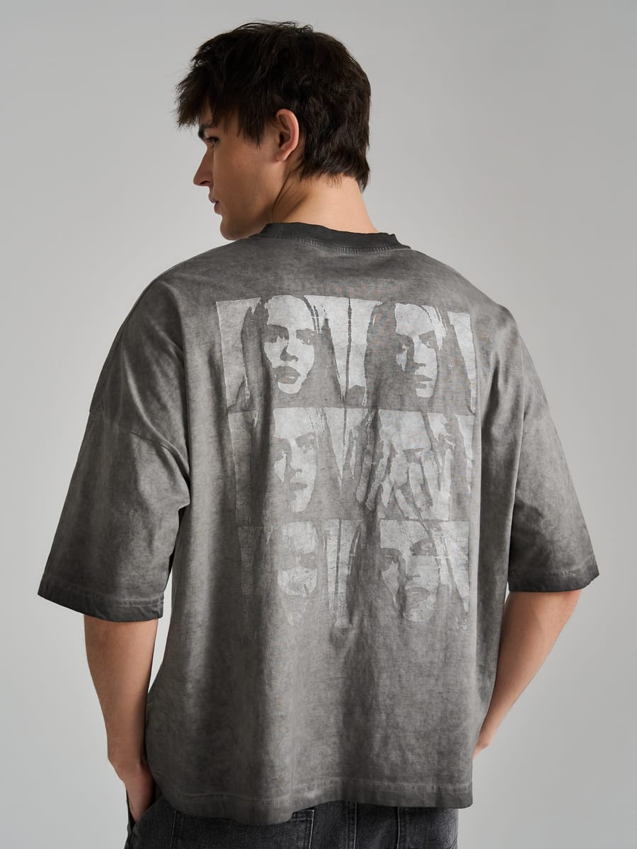 Футболка с вареным эффектом и принтом на спине