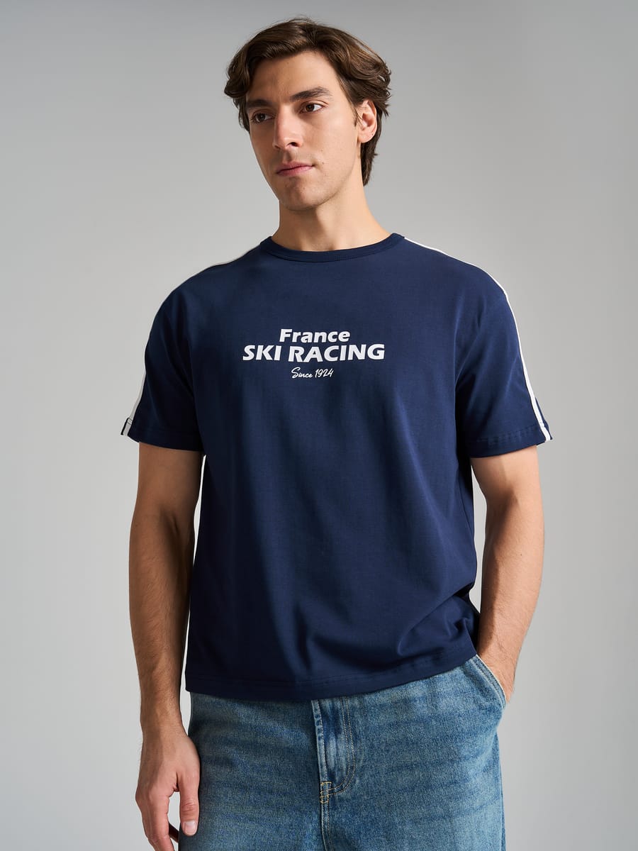 Стильная спортивная футболка от бренда ТВОЕ — идеальное сочетание комфорта и спортивного шика! Тёмно-синий цвет в сочетании с белыми лампасами и надписью France SKI Racing создаёт динамичный образ для активных мужчин. Дизайн модели привлекает внимание продуманными деталями: приталенный крой подчёркивает фигуру, а спортивные элементы делают футболку незаменимой частью тренировочного гардероба.