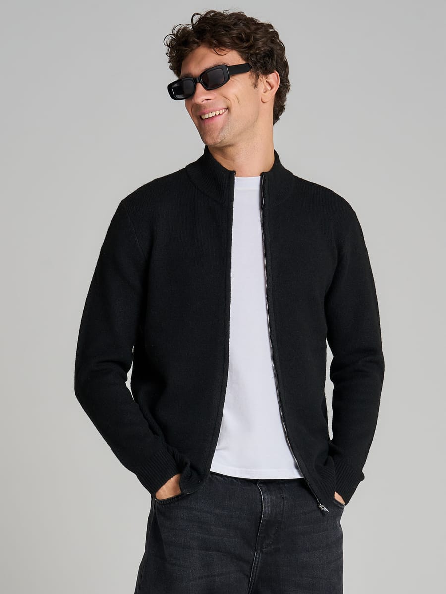 Стильный мужской кардиган от бренда ТВОЕ – идеальное сочетание делового стиля и комфорта в сезоне 2025 года. Модель сочетает в себе классический дизайн и современные элементы, становясь незаменимой частью гардероба современного мужчины. Элегантный дизайн свитера привлекает внимание продуманными деталями: воротник-стойка с возможностью трансформации в отложной создает дополнительный комфорт, а декоративные косы добавляют изделию изысканности. Прямой крой подчеркивает мужественность образа.
