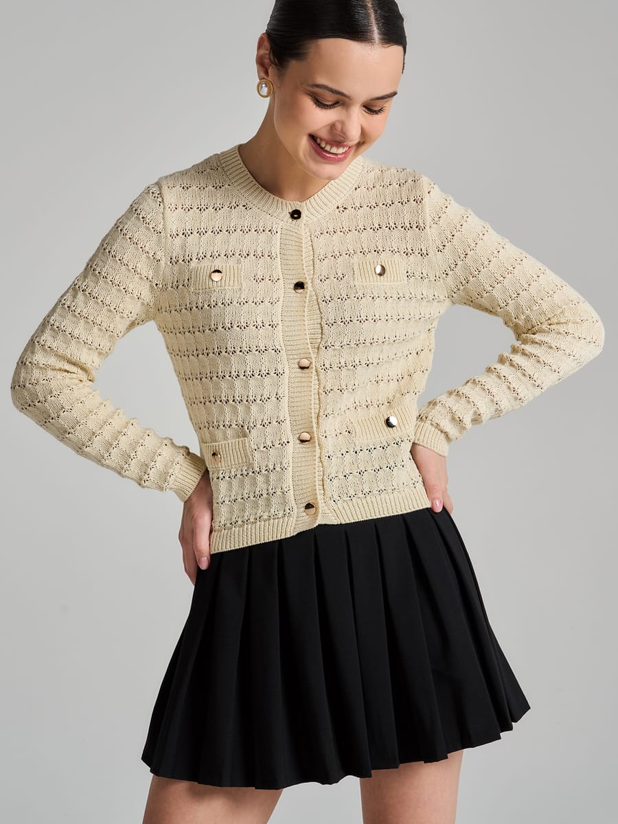 Женский кардиган от бренда ТВОЕ — это воплощение элегантности и утонченности в мире моды. Этот кардиган станет идеальным дополнением к вашему гардеробу, будь то для офиса, праздника или повседневной носки.