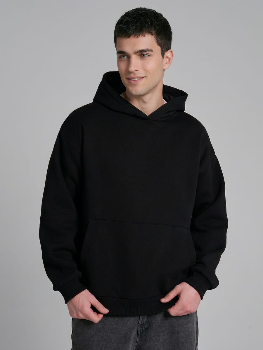 Мужское худи от российского бренда ТВОЕ в черном цвете — это сочетание современной эстетики и повседневного комфорта. Глубокий однотонный цвет придаёт модели выразительность, сохраняя при этом универсальность: худи легко комбинируется с разными элементами гардероба и вписывается как в спортивный, так и в расслабленный городской стиль. Оверсайз‑крой создаёт объёмный, свободный силуэт, который не сковывает движений и подчёркивает непринуждённый характер образа. Длинный рукав с эластичными манжетами обеспечивает плотную посадку, а вместительный капюшон добавляет практичности — он защитит от ветра и лёгкого холода, придавая силуэту завершённость.