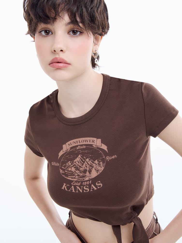 Короткая футболка с принтом и завязками