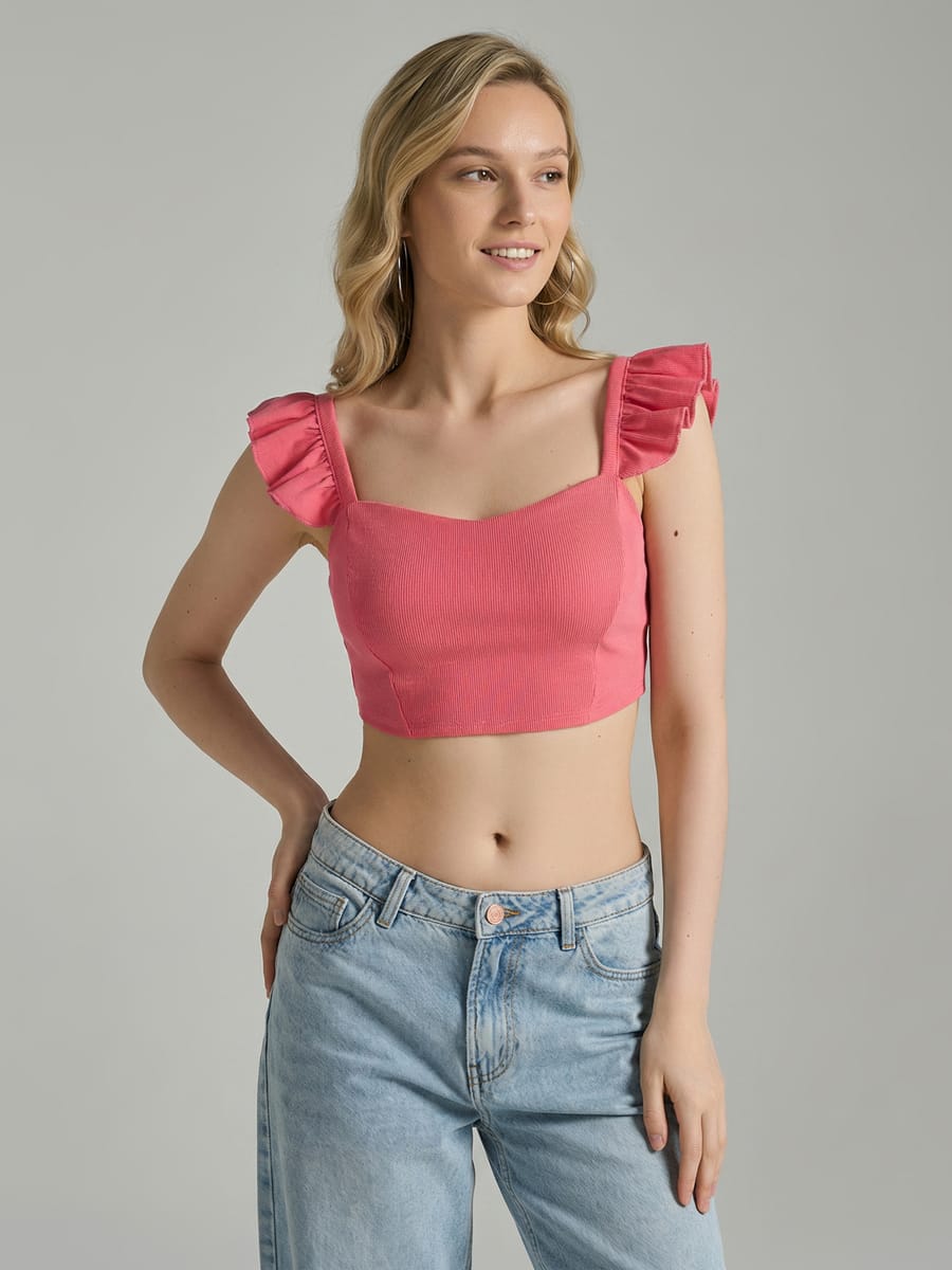 Короткий топ с рюшами на лямках