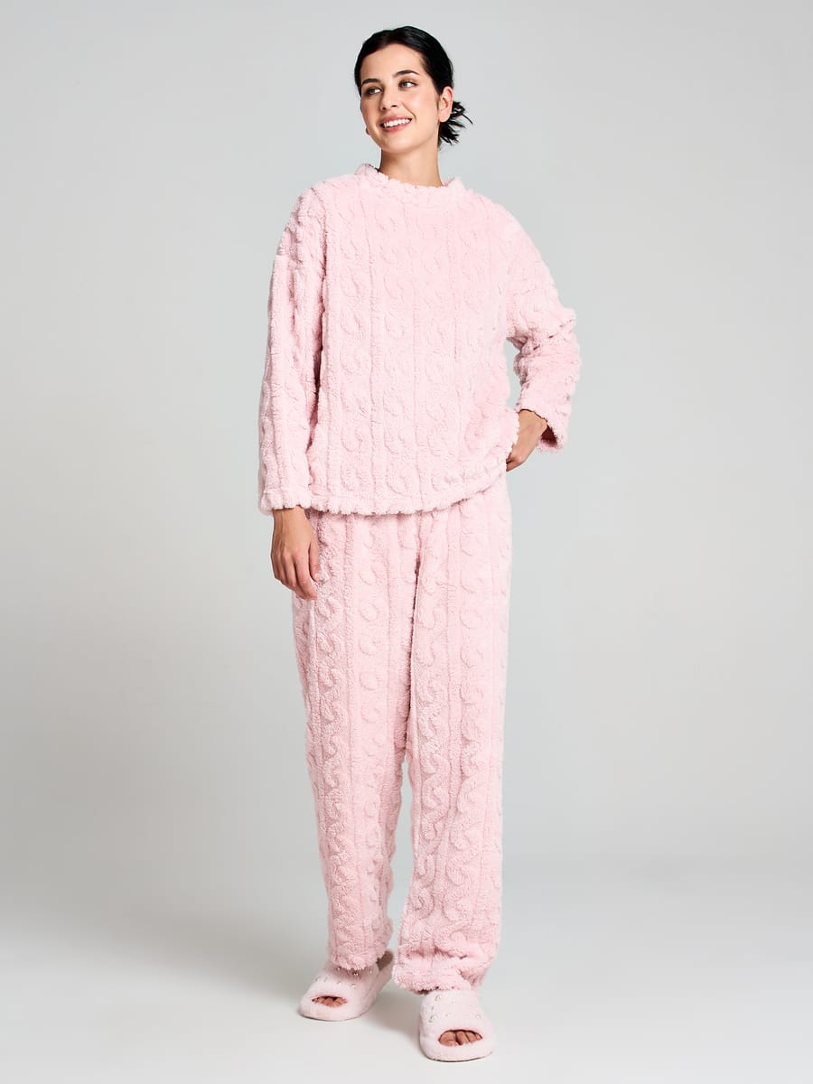 Новогодняя теплая плюшевая пижама с косами и брюками