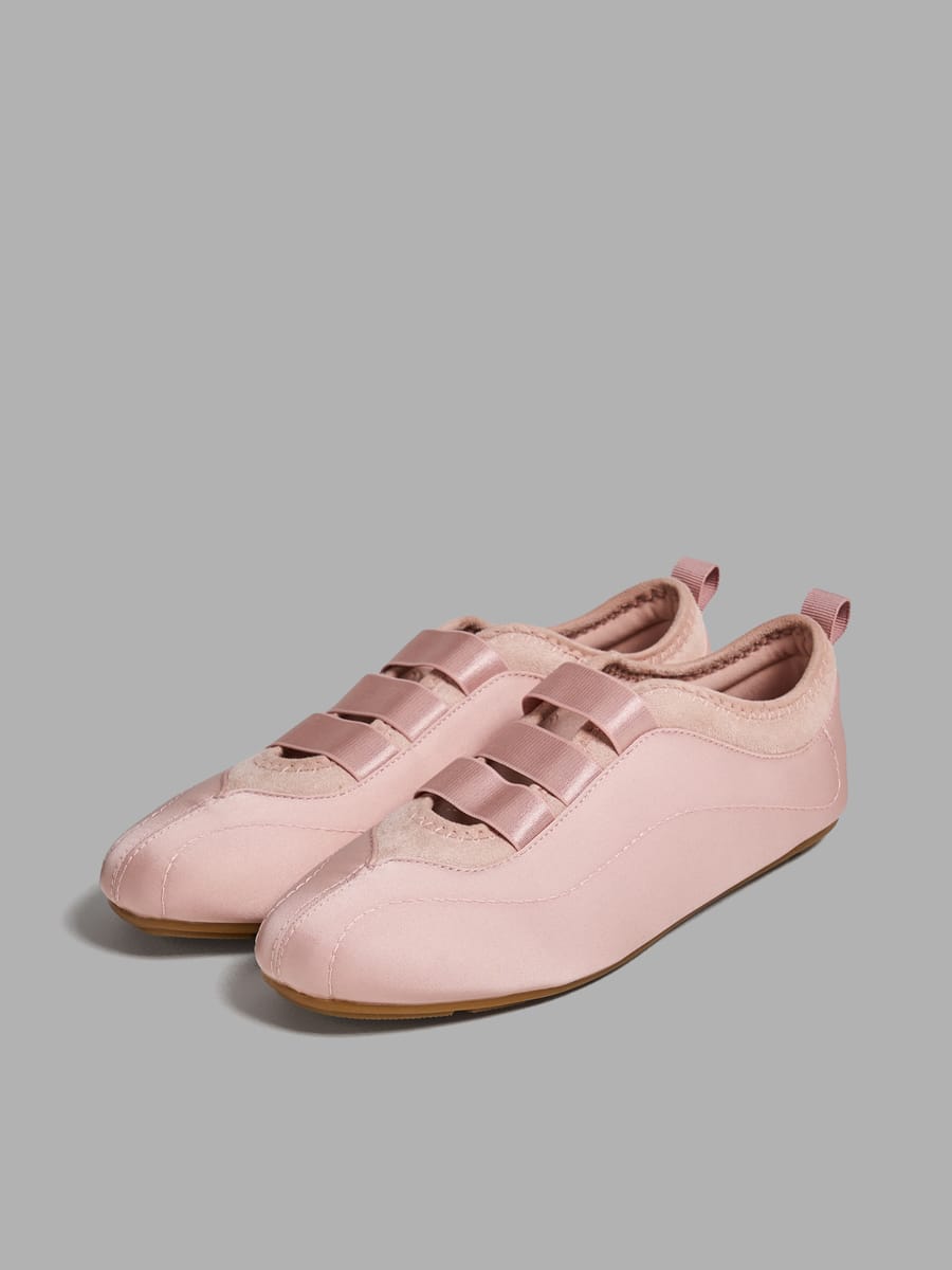 Эти женские кроссовки в виде пуантов балетных — нежный акцент в повседневном гардеробе: верх из тестиля выглядит легко и аккуратно, а розовые оттенки добавляют образу мягкости. Низкий силуэт делает пару универсальной и особенно удобной на каждый день.