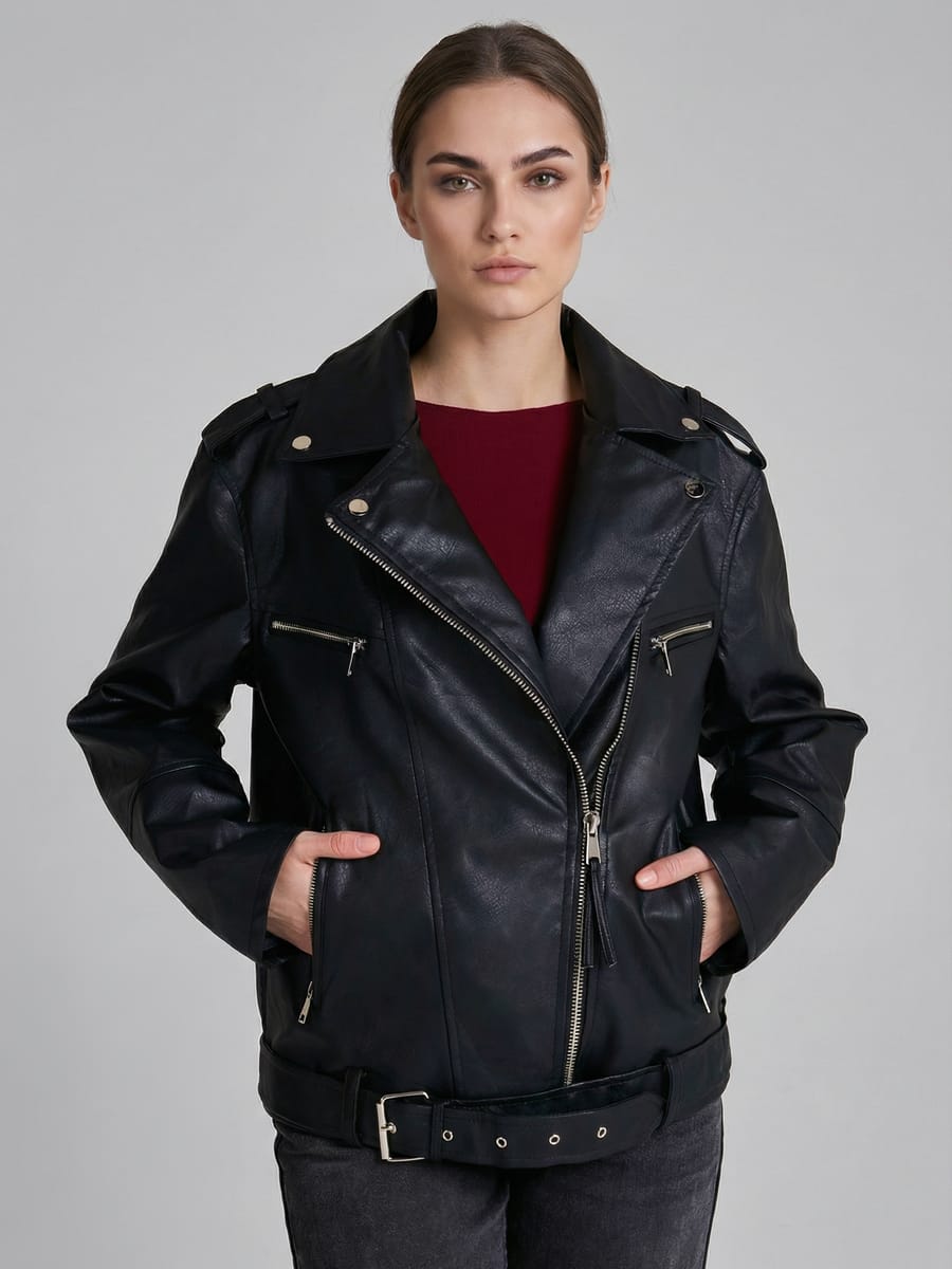 Женская куртка от бренда ТВОЕ — стильная косуха из качественной экокожи, которая идеально впишется в демисезонный гардероб. Лаконичный силуэт косухи подчёркивает не съёмный ремень на талии — он придаёт посадке выразительность и позволяет выгодно выделить фигуру. Застёжка на надёжной молнии обеспечивает удобство в повседневном использовании, а четыре прорезных кармана на молниях добавляют функциональности: в них удобно хранить необходимые мелочи, сохраняя при этом аккуратный внешний вид. Особую изюминку модели придают декоративные погоны на кнопках — они вносят в образ нотку дерзкой эстетики, не перегружая общий силуэт.