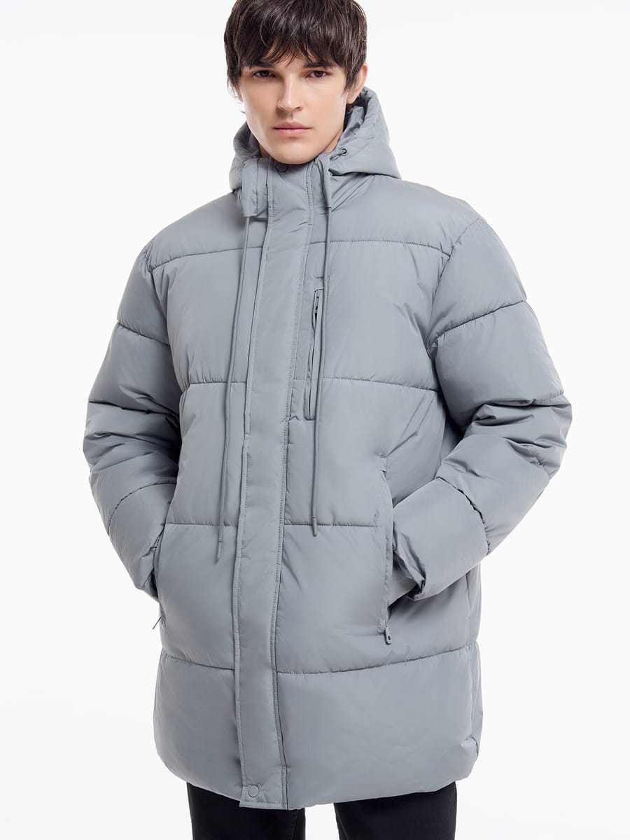 Светло-серая утепленная куртка — идеальное решение для холодной осени и зимы. Пуховик сочетает в себе классический дизайн и современные элементы, создавая актуальный образ в спортивном стиле. Прямой крой и удлиненная конструкция пуховика обеспечивают комфортную посадку и свободу движений. Воротник-стойка в сочетании с капюшоном, оснащенным регулируемыми завязками, надежно защищает от холода и ветра. Продуманная конструкция включает функциональные детали: прорезные карманы на молнии для безопасного хранения вещей и потайной карман для ценных предметов. Трикотажные манжеты эффективно сохраняют тепло, не сковывая движений.