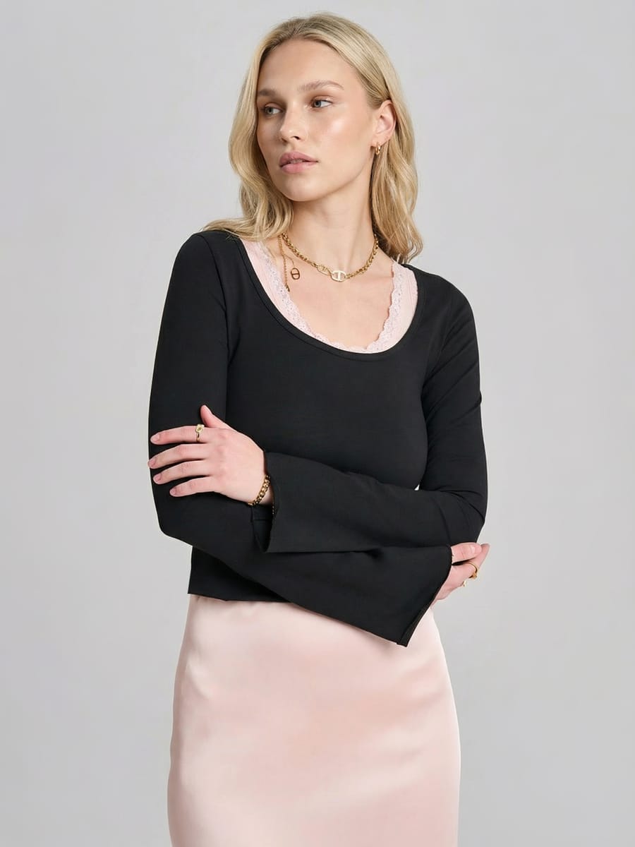 Лонгслив приталенный с длинными рукавами клеш