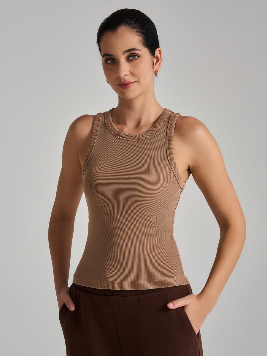 Майка на широких бретелях с вареным эффектом
