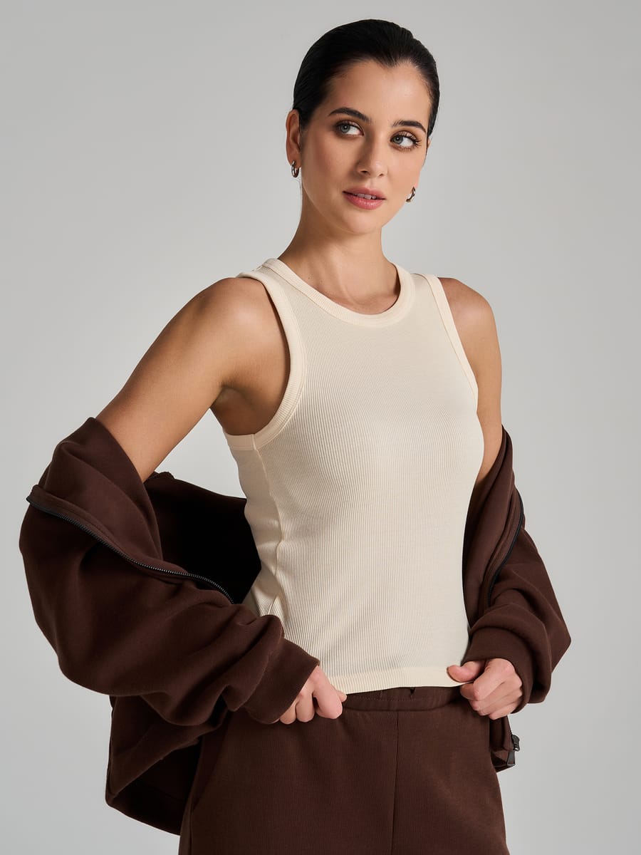 Женская майка от бренда ТВОЕ — это стильный и универсальный предмет гардероба, воплощающий современный молодёжный дух. Модель выполнена из натурального хлопка (100 %), отличается приятной плотностью — 200 г/м 2 — и безупречно держит форму. Приталенный крой и облегающий силуэт подчёркивают фигуру, создавая изящный и женственный образ. Варёный эффект придаёт изделию особую изюминку: лёгкая неоднородность оттенка добавляет вещи характер и делает её визуально интереснее. Широкие бретели обеспечивают комфортную посадку и поддерживают форму, оставляя плечи открытыми — это придаёт образу лёгкость и динамику.