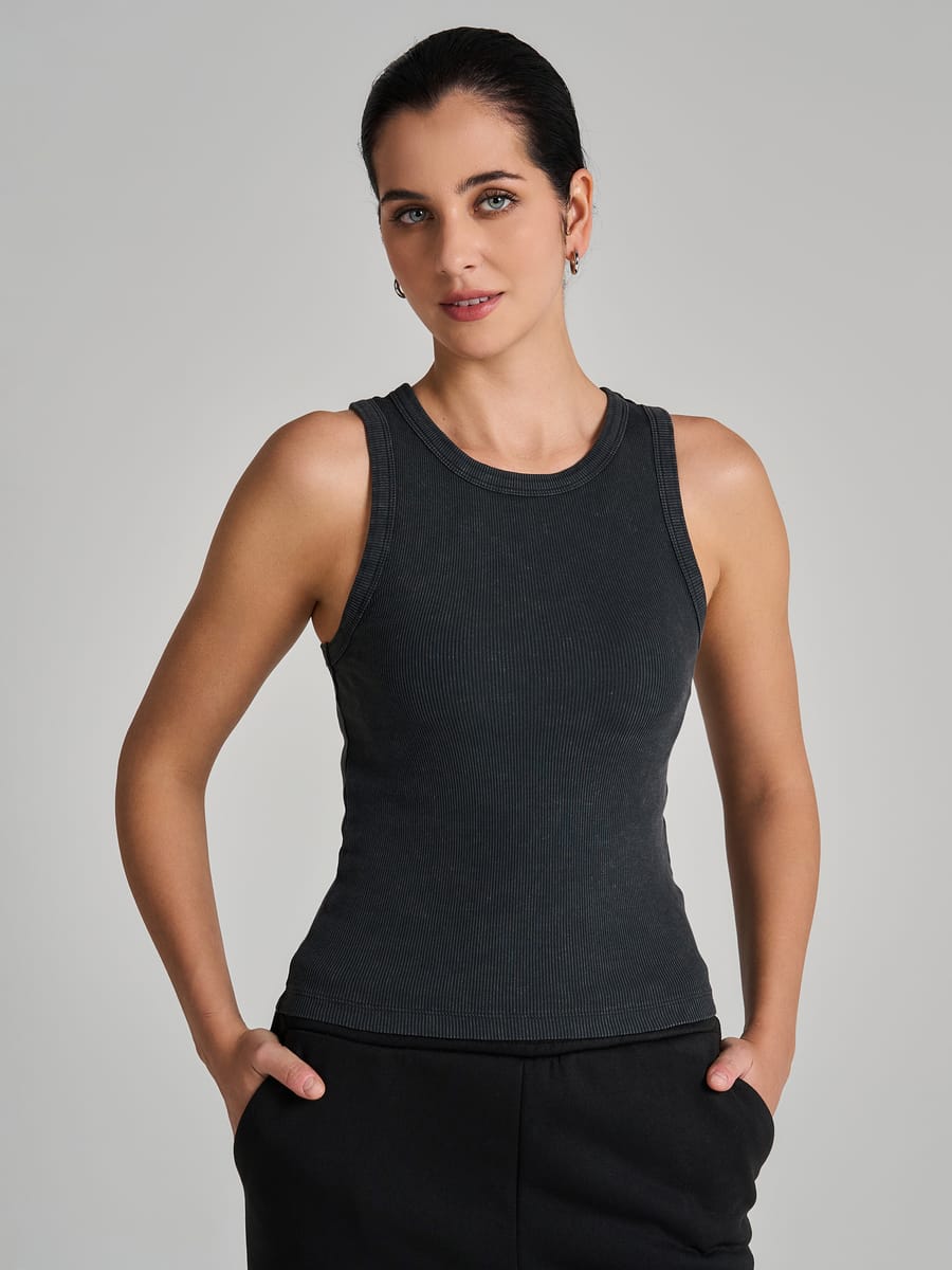Майка на широких бретелях с вареным эффектом
