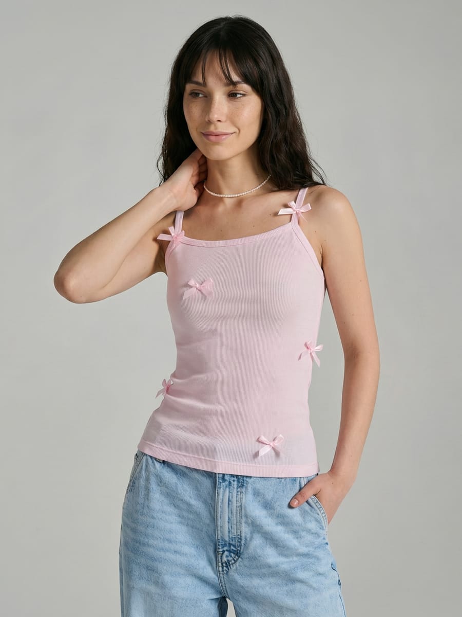 Эта стильная и модная женская майка от бренда ТВОЕ станет настоящей находкой для вашего гардероба. Выполненная из 100% хлопка, кофта обладает рубчиковой фактурой, что придает ей дополнительную эластичность и комфорт. Тонкие лямки и открытые плечи подчёркивают утончённость и женственность модели, делая её идеальной для летних дней. Приталенный крой и облегающий силуэт обеспечивают идеальную посадку, подчёркивая достоинства фигуры. Нежные бантики добавляют образу игривости и шарма, делая кроп-топ подходящим как для подростков, так и для женщин, стремящихся следовать модным тенденциям.