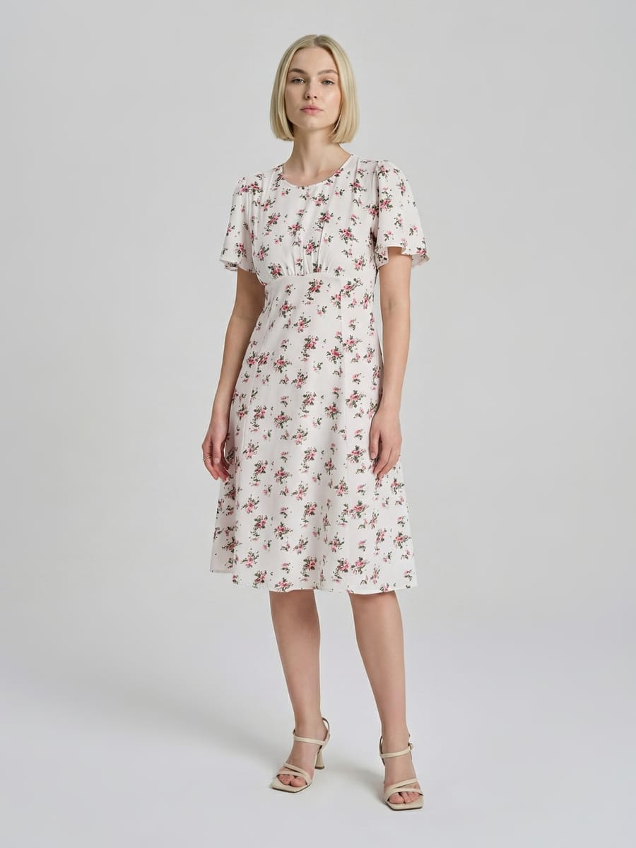 Стильное платье миди от ТВОЕ 2026 года в стиле «крестьянка» — идеальный выбор для лета. Приталенный верх и расклёшенная юбка создают женственный силуэт, цветочный принт добавляет романтичности, а рукава‑крылышки и вырез на спине придают модели изюминку. Подходит для пляжа, праздника и повседневных образов. Модное, элегантное и молодёжное — добавьте это популярное платье в свой летний гардероб!