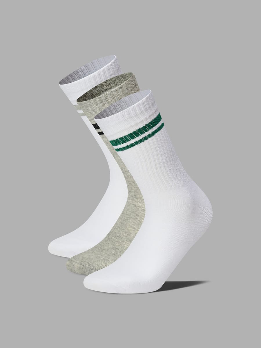 Мужские носки от бренда ТВОЕ — это воплощение сдержанного стиля и повседневного комфорта. Длинные спортивные модели выполнены в благородной гамме: сочетание белого и серого оттенков придаёт им универсальность и лаконичность. Особый шарм изделиям добавляют две тонкие полоски, которые ненавязчиво оживляют дизайн, делая носки заметными, но не кричащими. Такой аксессуар легко вписывается в любой гардероб — от спортивного до повседневного.
