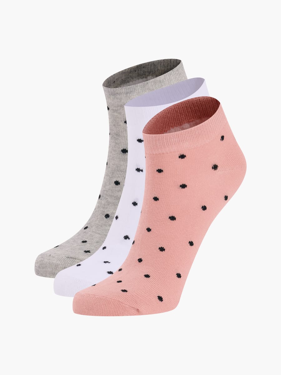 В комплект входят 3 пары коротких носков в цветовой гамме: розовый, серый и белый, украшенные очаровательным принтом в горошек. Изготовлены из премиального материала (72% хлопок, 26% полиэстер, 2% эластан), обеспечивающего отличную эластичность и приятные тактильные ощущения.